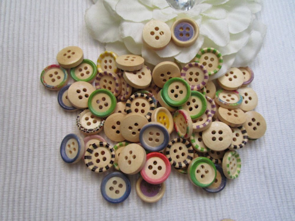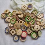 ARTICLE: Lot de 8 Boutons Mixtes de 15x4mm Bois Rond avec Motifs Fantaisies à 4 Trous