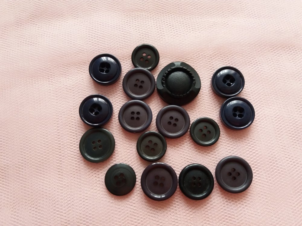 Je vous propose ce lot de boutons couleurs foncées, ronds, de tailles différentes, allant de 3 cm de diamètre pour le plus grand et 1,8 cm pour les plus petits.
