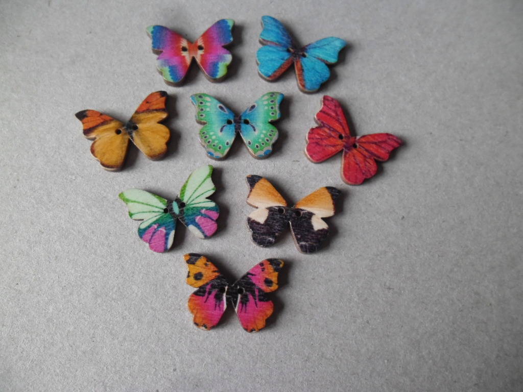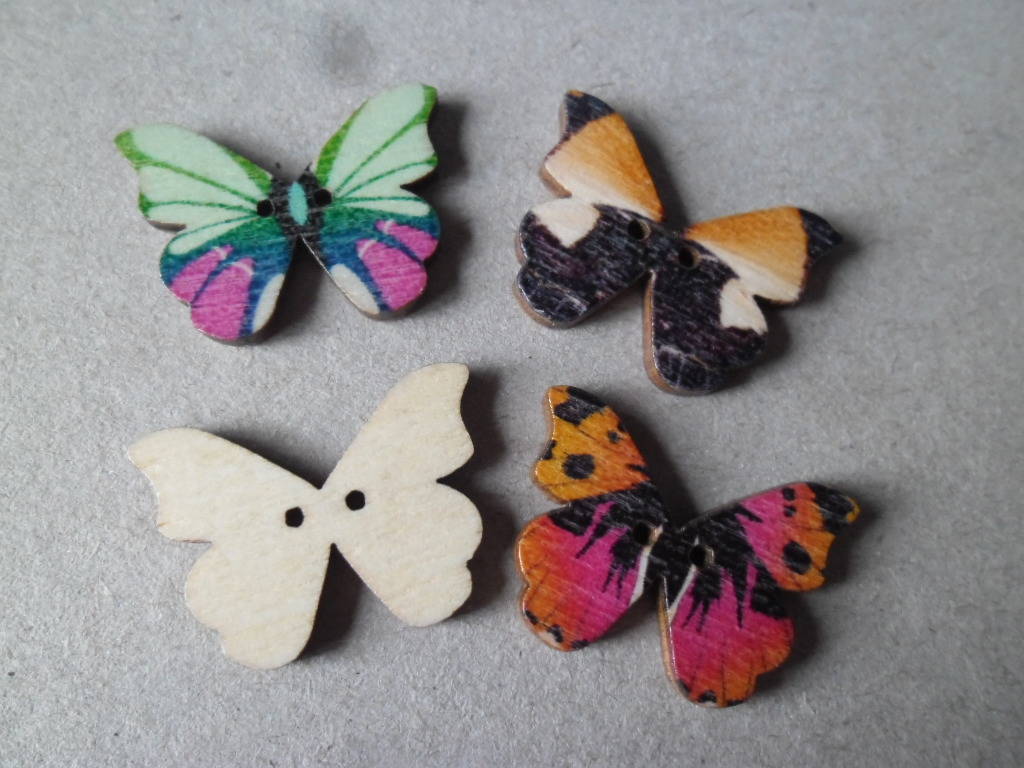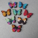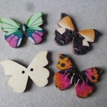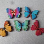 ce très beau lot de 5 mixte boutons en bois représentant des papillons multicolore à 2 trous.