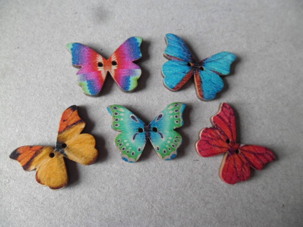 x 5 mixte boutons bois papillons multicolore 2 trous