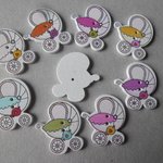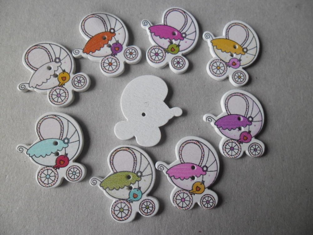 ce très beau lot de 5 mixte boutons en bois en forme de poussettes multicolore à 2 trous.