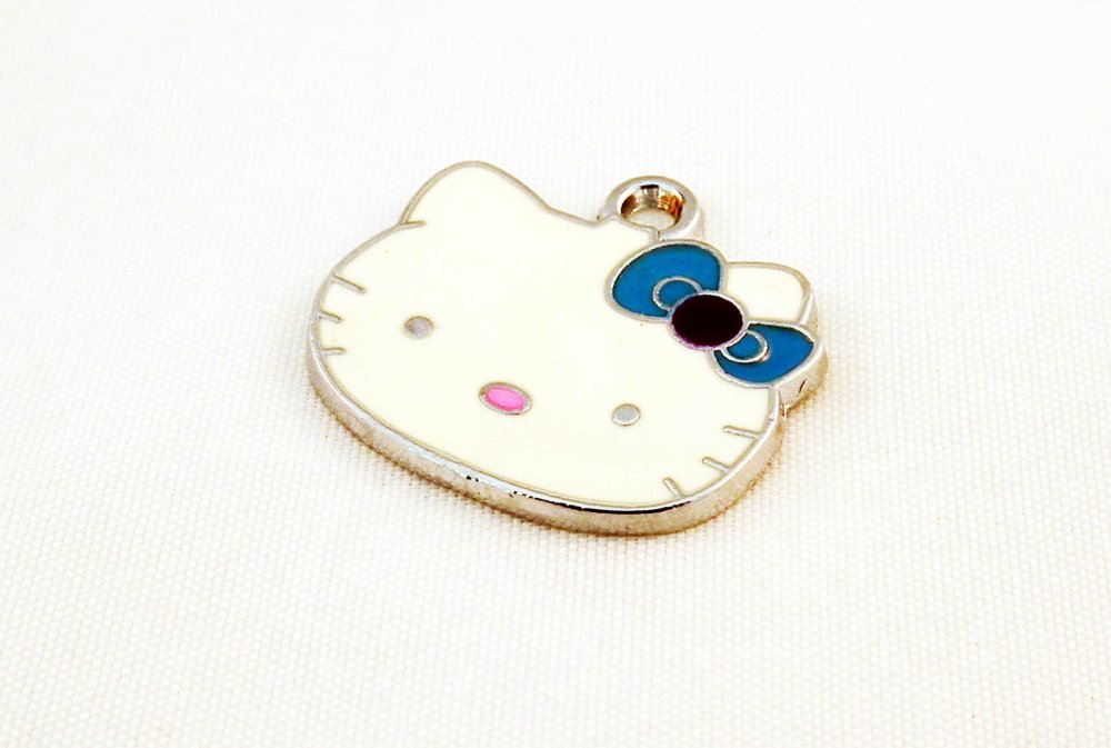 Breloque Pendentif Chat Noeud Boucle couleur Rose Bleu Blanc en Émail