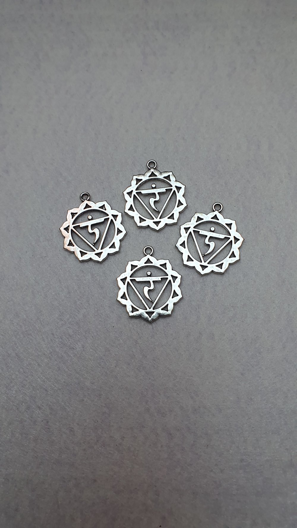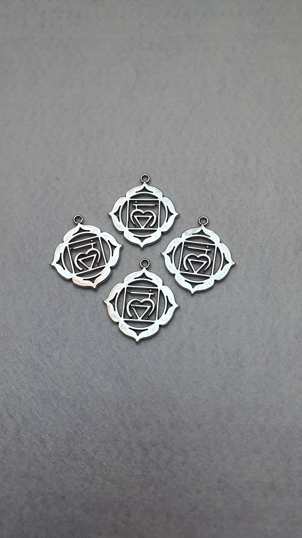 1 Breloque fleur lotus chakra yoga zen 3.4x2.6cm argent tibétain Épaisseur 2mm
