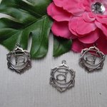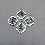 1 Breloque fleur lotus chakra yoga zen 3.7x3.3cm argent tibétain