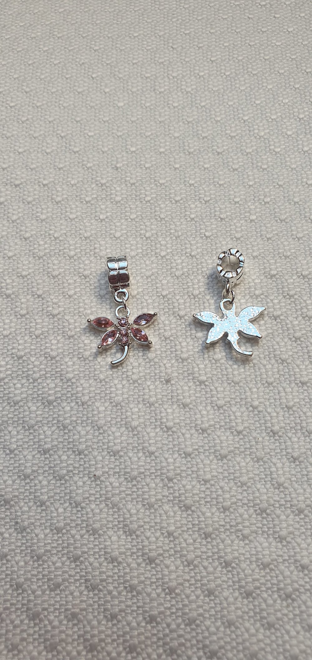 1 Breloque libellule rose sur bélière 31x20mm strass