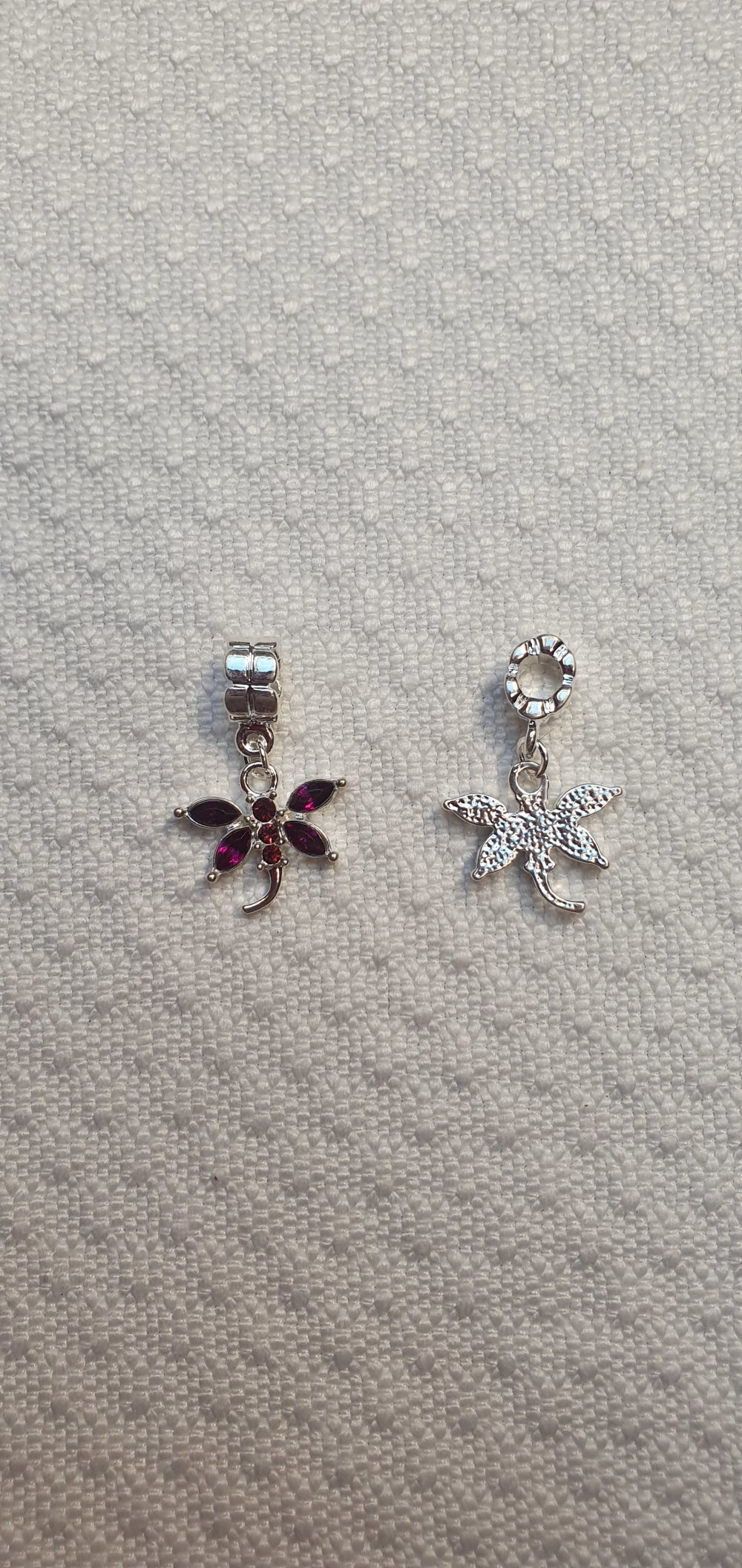 1 Breloque libellule rose sur bélière 31x20mm strass argent tibétain trou de 5mm