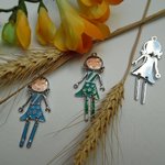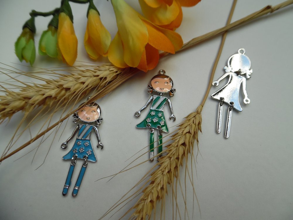 1 Breloque VERT "Petite Fille" Articulée Email Métal Argenté Brillant 6.1x2.5cm