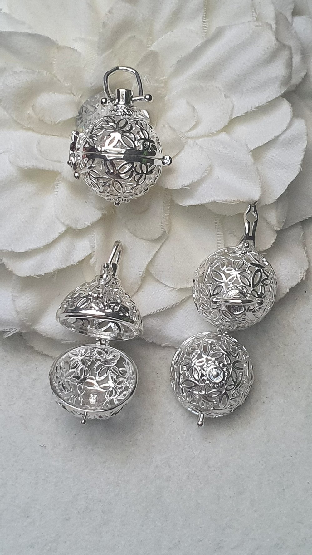 1 Cage Bola fleur 26x24mm B53 argenté blanc avec ouverture pour insertion de perle de 15mm. Diverses cages Bolas dans la boutique