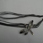 1 collier libellule émaillé Ton gris noir 4.1x4cm strass argent Tibétain + Collier Lien Ciré et Organza de 42cm