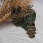 1 Grand pendentif hibou chouette 9.2x4cm articulé strié bronze