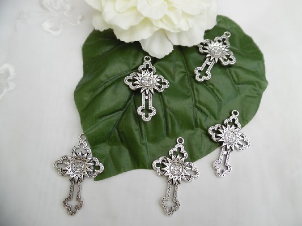 1 Grande croix soleil ciselé 3D frappé 5.5x3.3x0.35cm recto verso argent tibétain