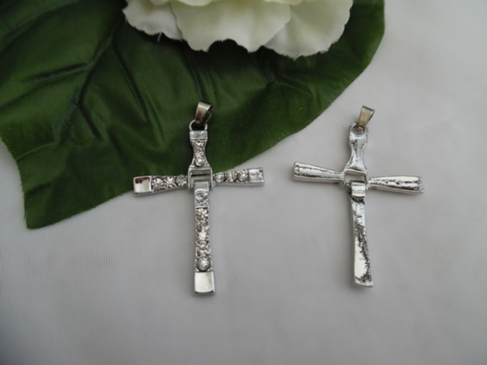 1 Grande croix strass articulée 5.2x 3.55cm acier argenté gris