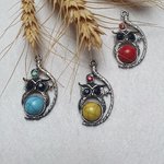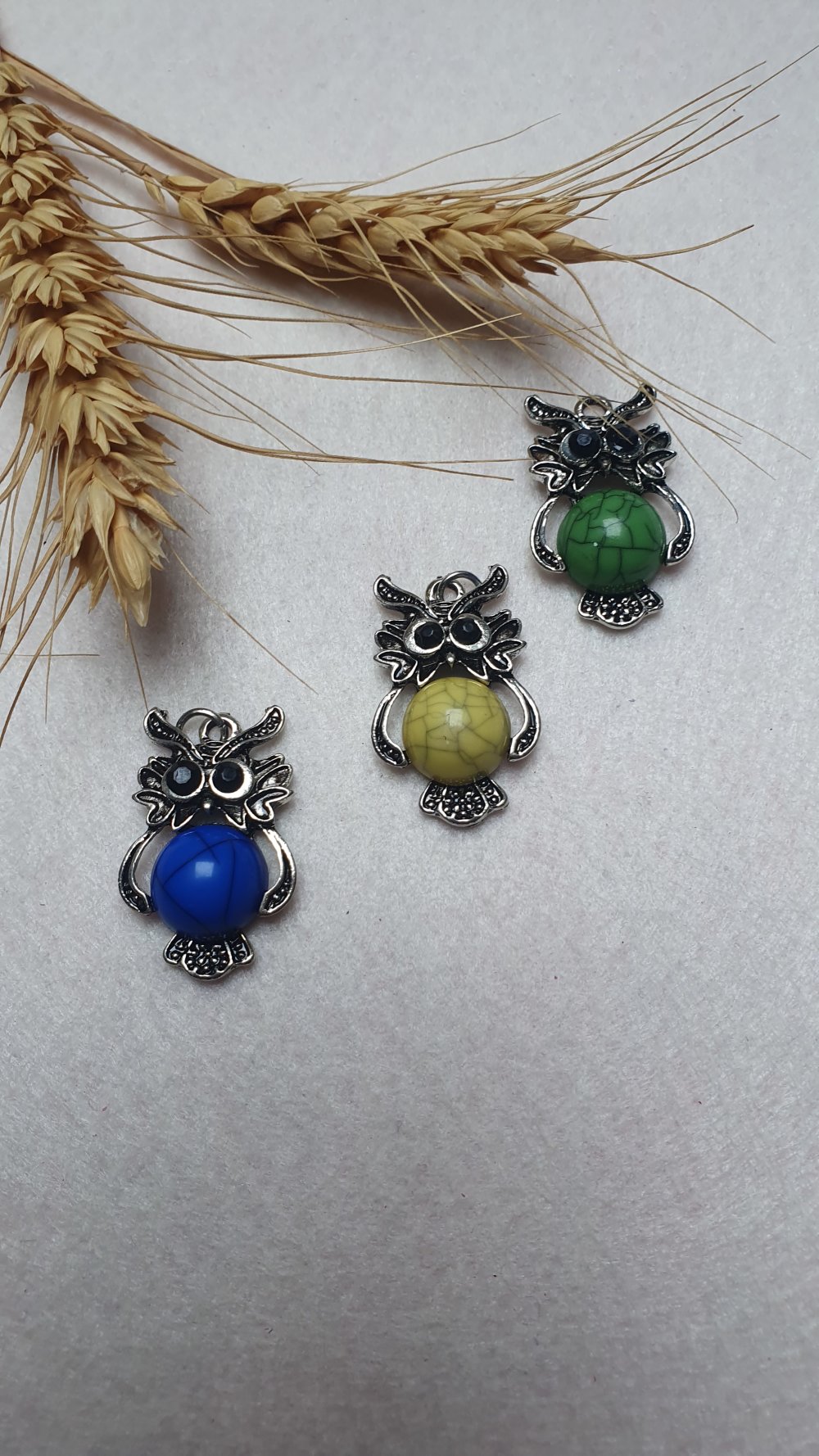 1 hibou chouette gris 33.5x20.5mm howlite argent tibétain.Divers pendentifs hiboux dans la boutique