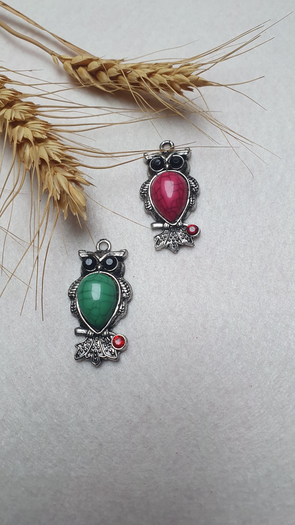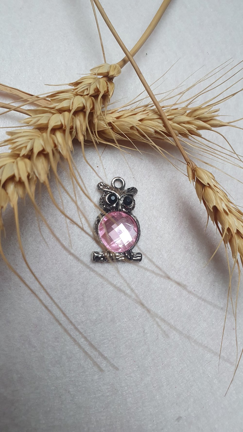 1 hibou chouette rose 30x18mm strass argent tibétain.Divers pendentifs hiboux dans la boutique