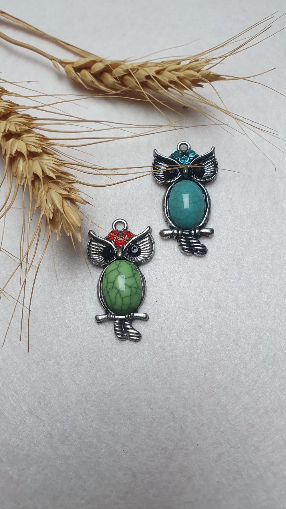 1 hibou chouette rose 33.5x20.5mm howlite argent tibétain.Divers pendentifs hiboux dans la boutique