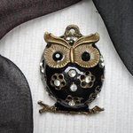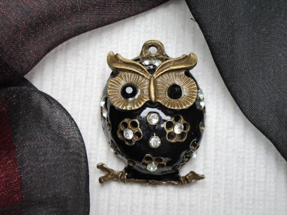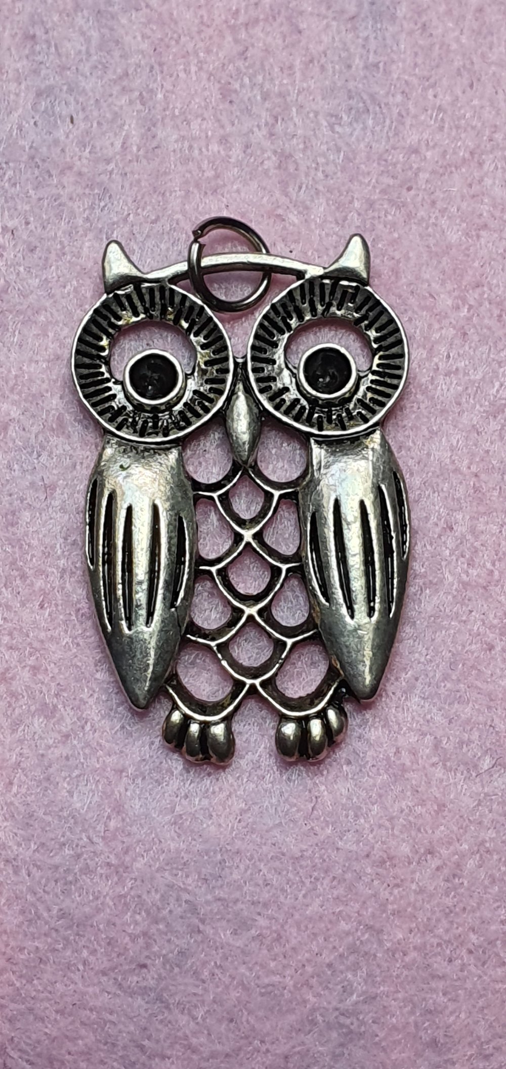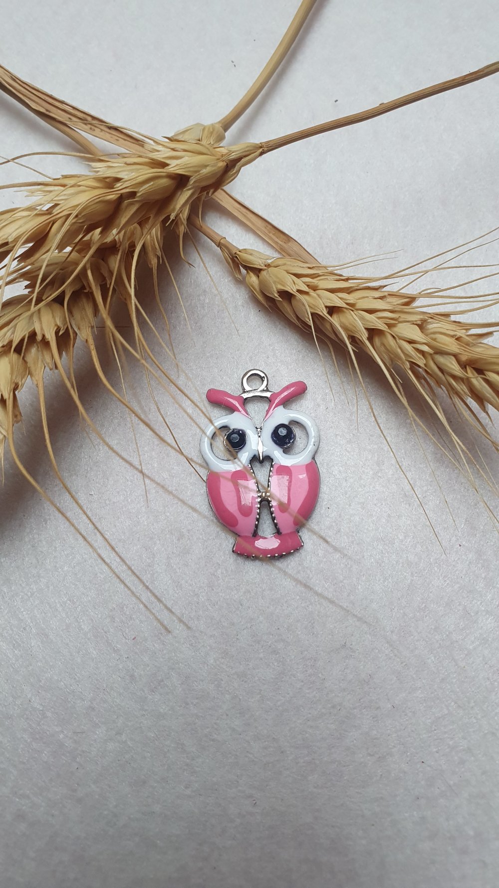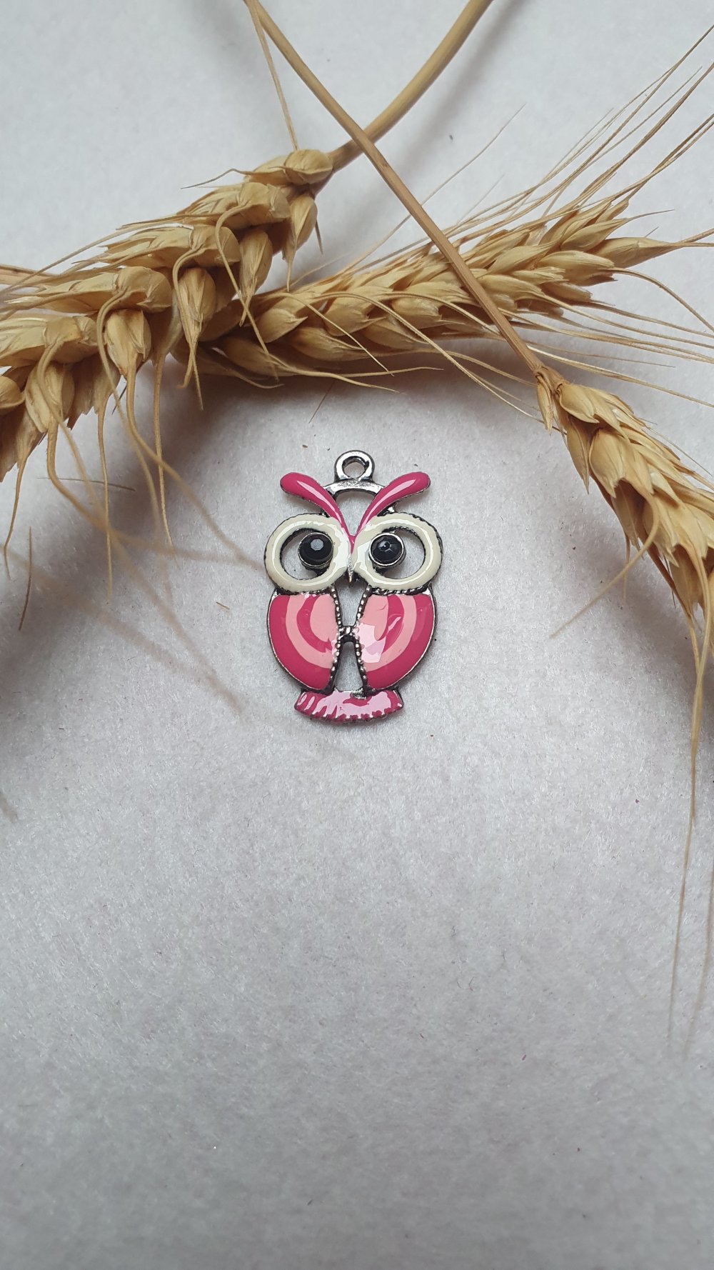 1 hibou chouette rose fuchsia 33x20.5mm émail argent tibétain.Divers pendentifs hiboux dans la boutique