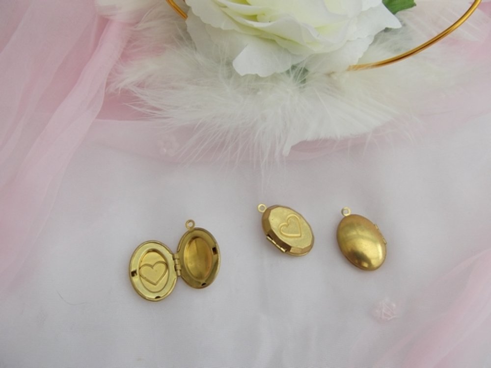 1 Médaillon Porte Photos double avec Motif Coeur Ovale Cuivre 21.5x6.5mm