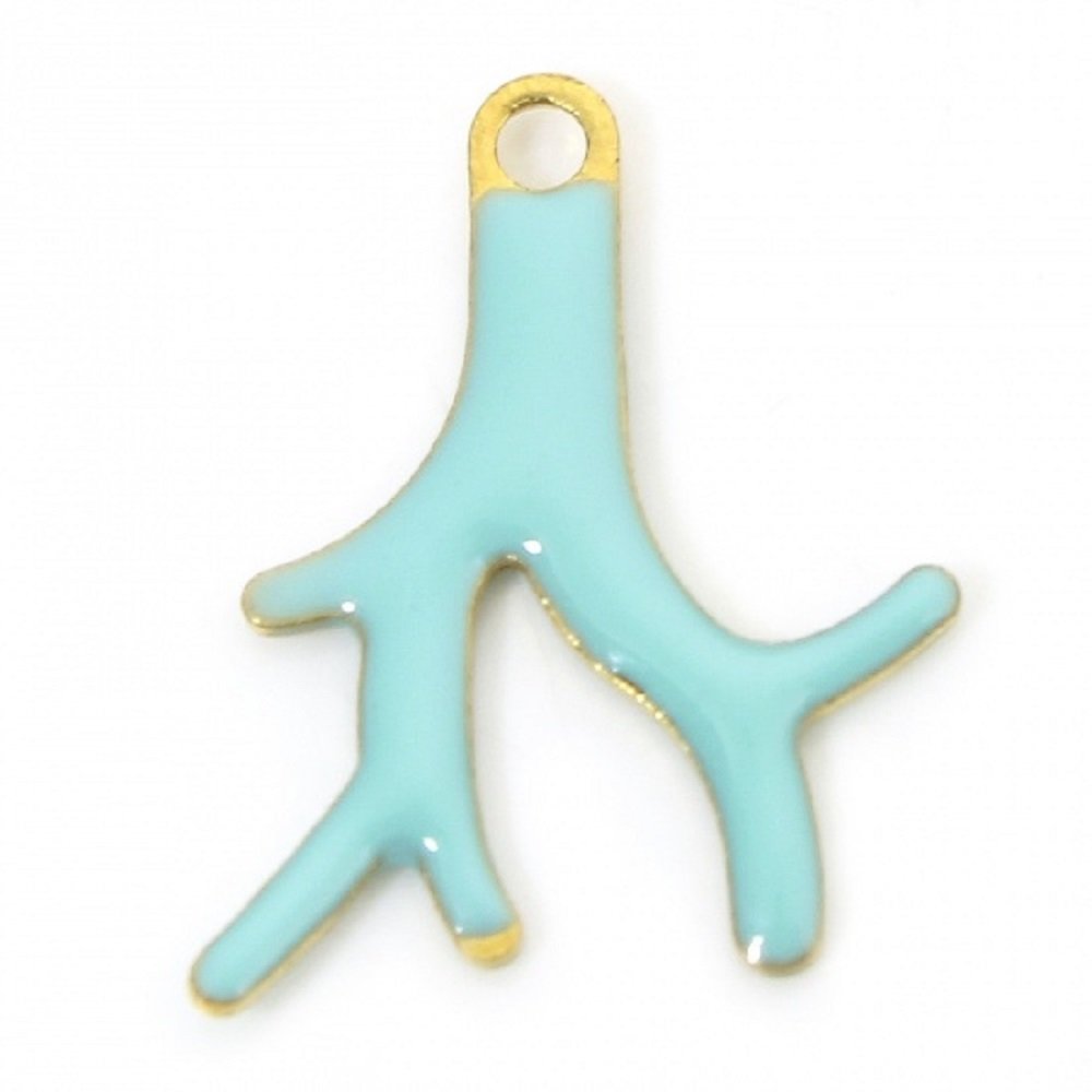 1 pendentif branche de corail émaillé turquoise métal laiton doré.