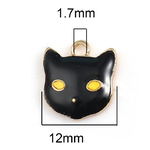 Un pendentif d'Halloween représentant une tête de chat avec des yeux jaunes.