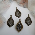 1 pendentif connecteur bijou goutte bombé ciselé 28x21mm bronze à 3 trous