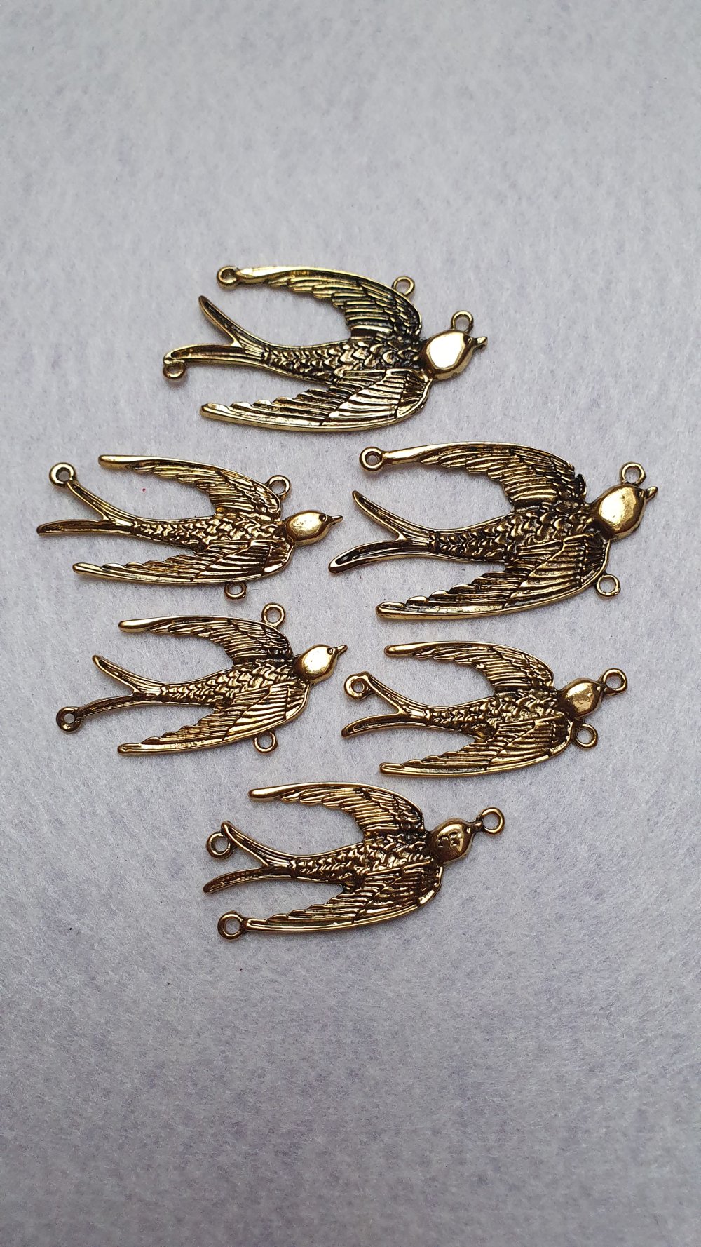 1 Pendentif connecteur n°1 bijou oiseau hirondelle colombe 55.5x30mm doré noir à 4 trous n°5