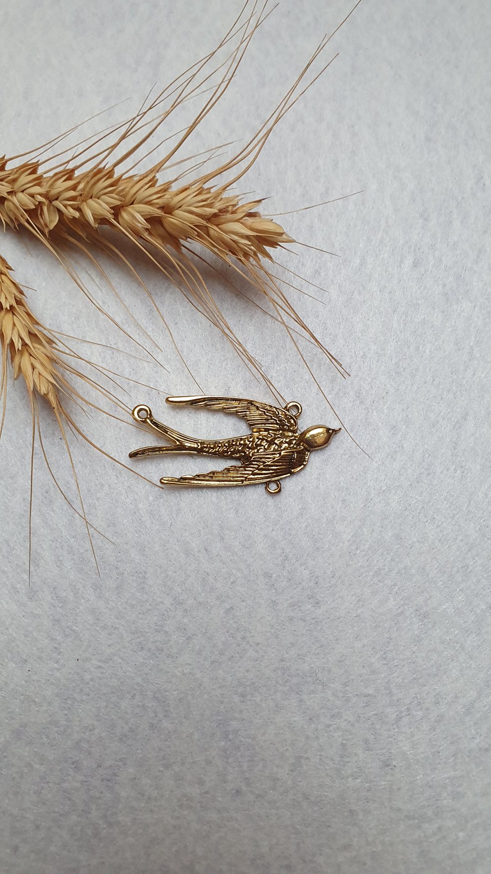 1 Pendentif connecteur n°2 bijou oiseau hirondelle colombe 49x26.5mm doré noir à 3 trous