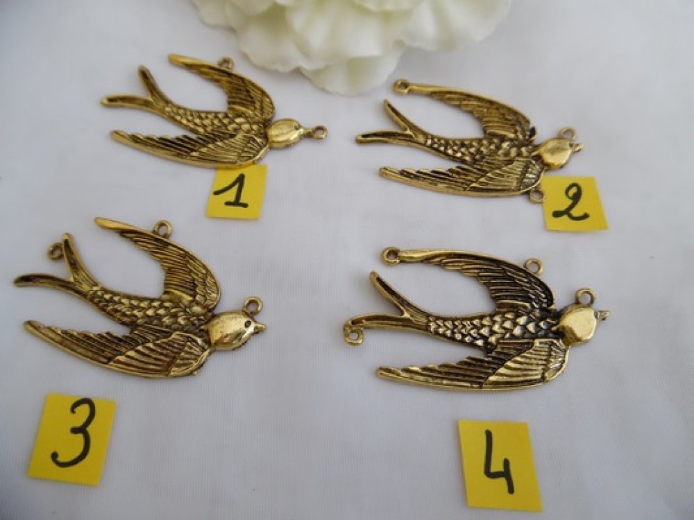 1 Pendentif connecteur n°2 bijou oiseau hirondelle colombe 49x26.5mm