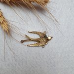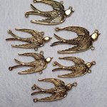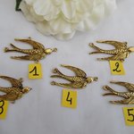 1 Pendentif connecteur bijou oiseau hirondelle colombe 46.5x25.5mm doré noir à 3 trous n°3