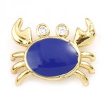 Le dessus est en émail bleu marine, l'arrière est tout doré et légèrement creux, il y a deux petit strass couleur cristal à l'emplacement des yeux. L'attache est cachée derrière une des pinces.