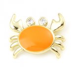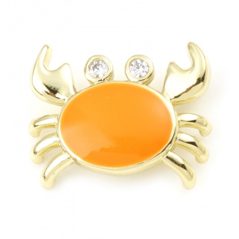 Le dessus est en émail orange, l'arrière est tout doré et légèrement creux, il y a deux petit strass couleur cristal à l'emplacement des yeux. L'attache est cachée derrière une des pinces.