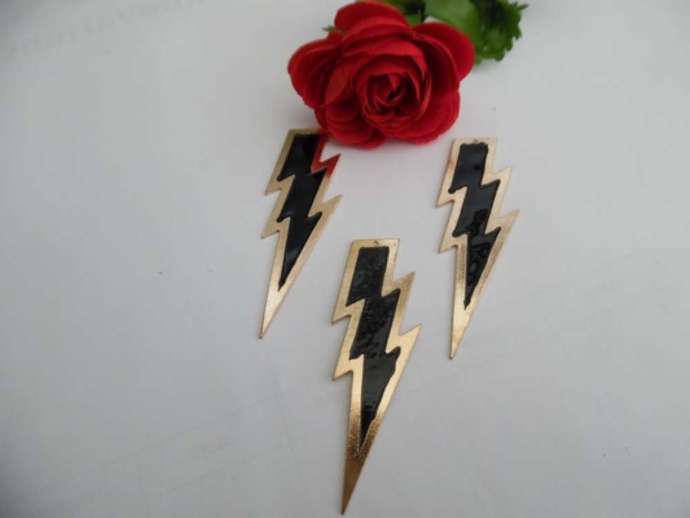 1 Pendentif flamme éclair 9.3x3cm doré émail noir