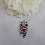 1 Pendentif hibou chouette 4.75x2.4x0.5cm strass multicolore argent tibétain