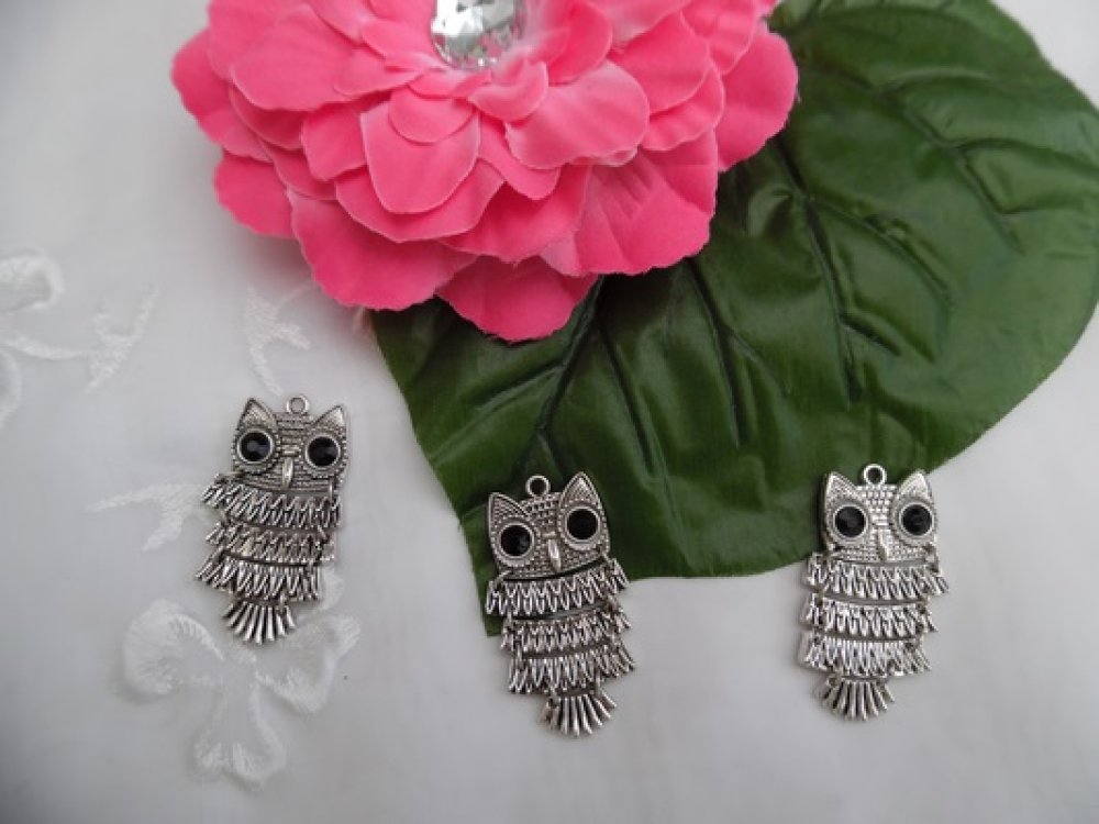 1 pendentif hibou chouette 4.8x2.6cm articulé strié argent tibétain