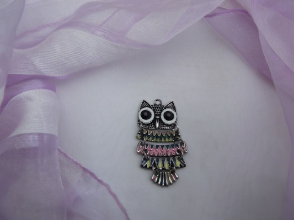 1 Pendentif H11 hibou chouette articulé 5.1x2.6cm émail Argent Tibétain