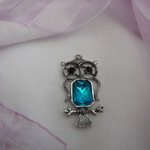 1 Pendentif hibou chouette rouge 5.5x2.75cm sur branche strass argent tibétain