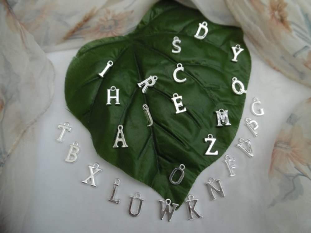 1 Pendentif Lettre de l'Alphabet "G" Argenté Blanc Brillant 15x9mm