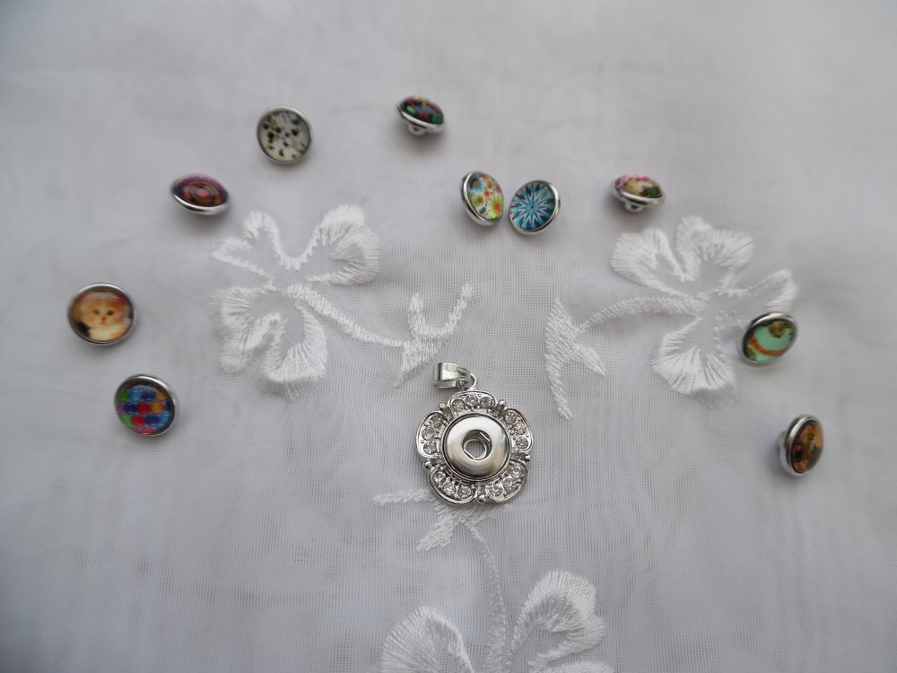 1 Pendentif pression fleur 3.1x2.2cm strass