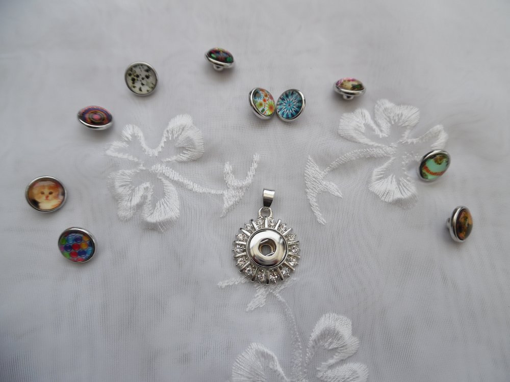 1 Pendentif pression soleil 3.1x2.2cm strass