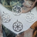 1 Pendentif rond fleur ajouré 35.4x30mm strass argenté