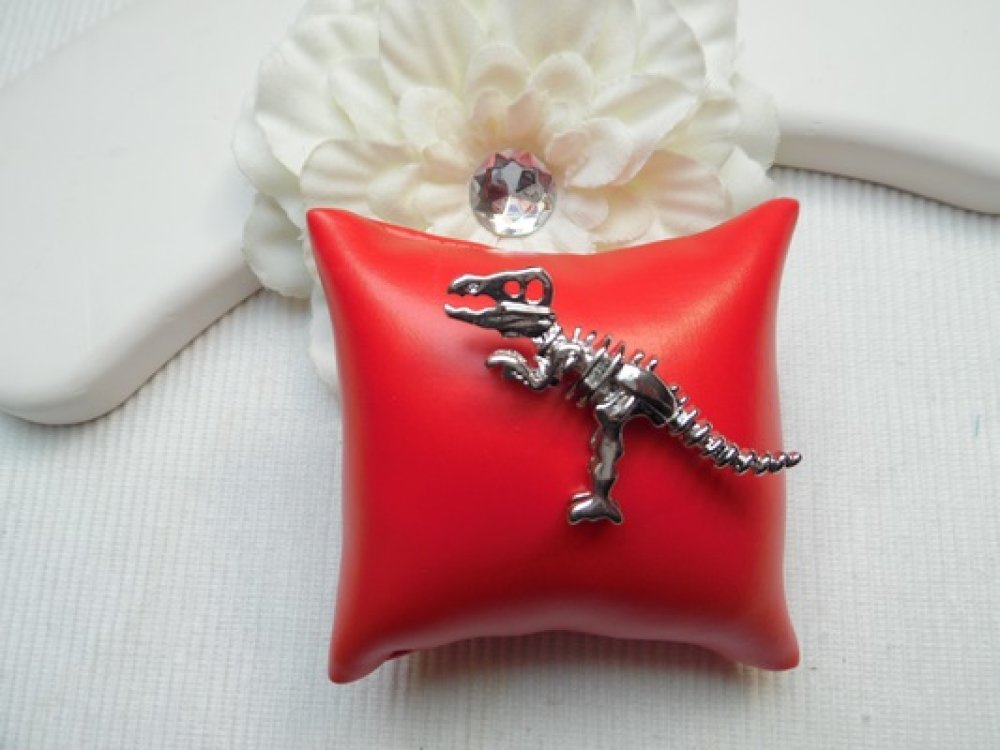 1 Pendentif squelette de dinosaure 3D métal argenté brillant 5.7x3.6cm
