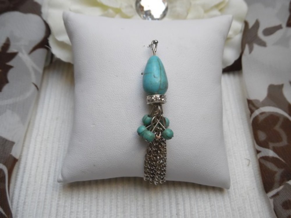 1 Pendentif Support de Boucles d'Oreilles goutte poire et perle turquoise chainette 6.6x1cm Argent Tibétain