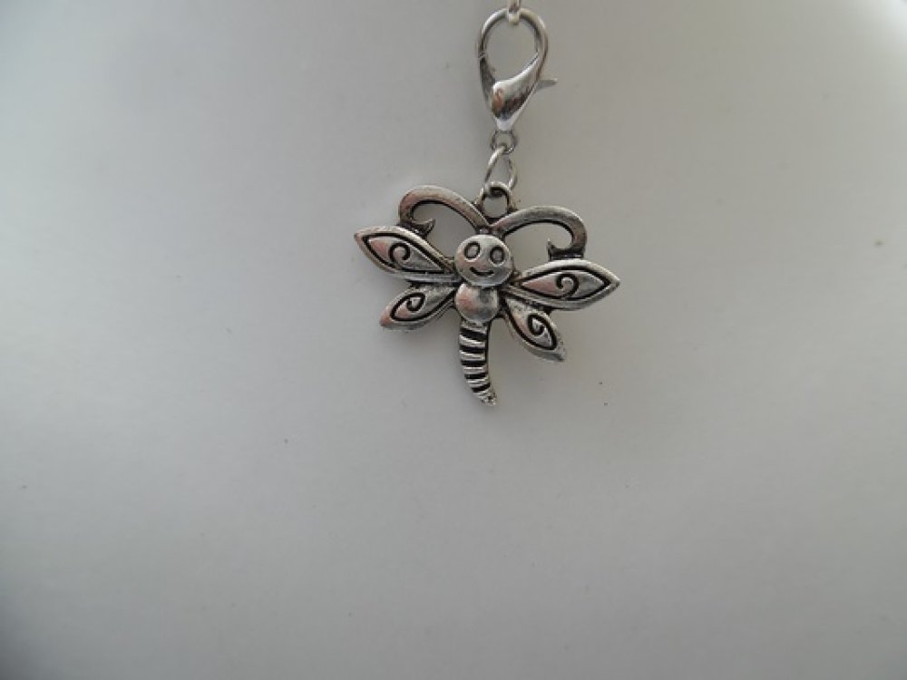 1 Pendentif sur mousqueton libellule 33x25mm argent tibétain