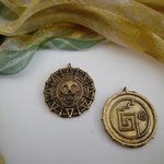 1 Pendentif Tête de Mort 35x31mm Signe Inca Pirate "Caraïbe" doré vieilli Rond Plein Lourd Ciselé Recto Verso