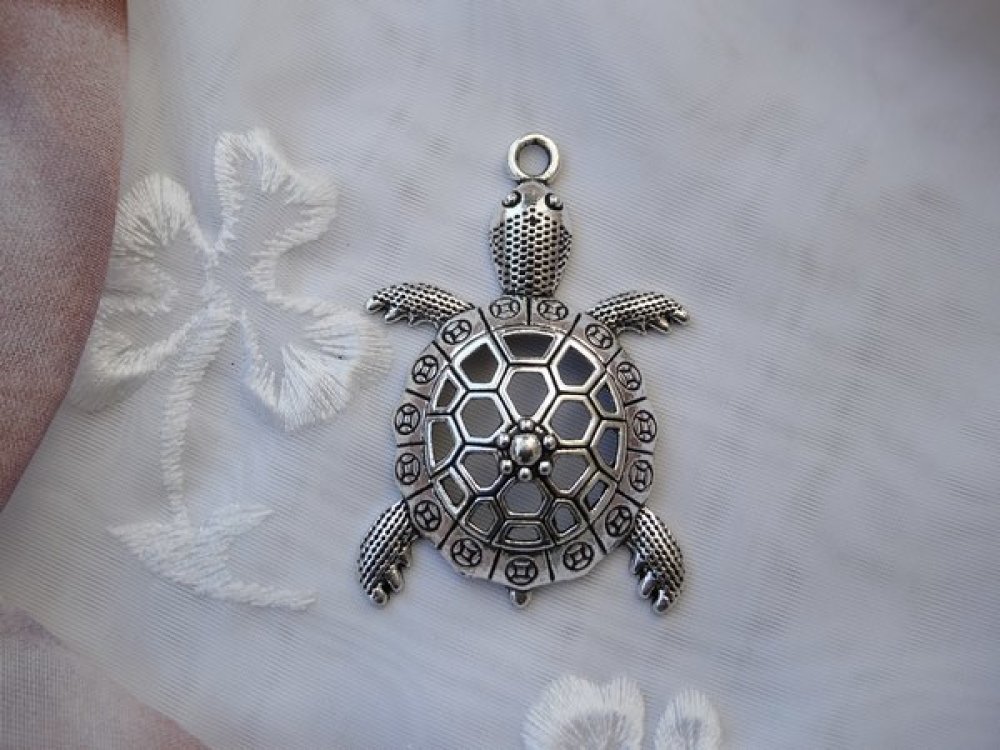 1 pendentif tortue 5.7x3.9x0.8cm ciselé argent tibétain
