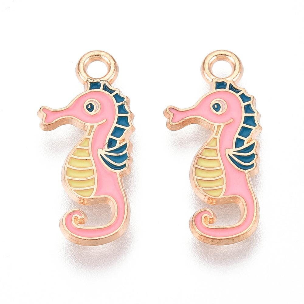 10 Breloques cheval de mer email 20 mm Pendentifs émaillé animaux marins
