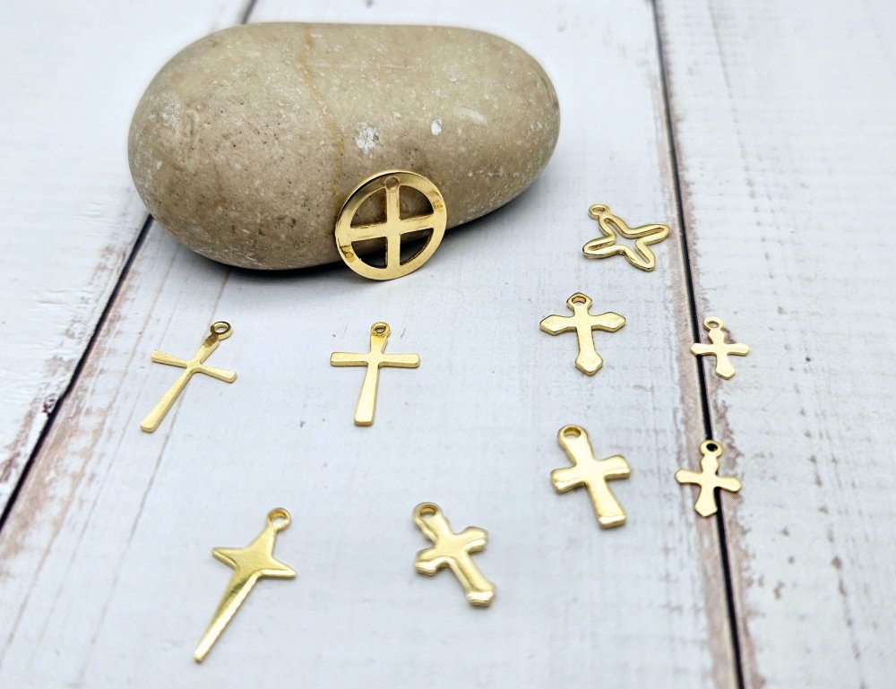 Apportez une touche spirituelle et lumineuse à vos créations avec ce magnifique lot de 10 breloques croix dorées 💛. Chaque modèle possède un design unique, idéal pour varier vos compositions selon vos inspirations : du style classique au minimaliste, en passant par des formes plus artistiques et modernes ✨.