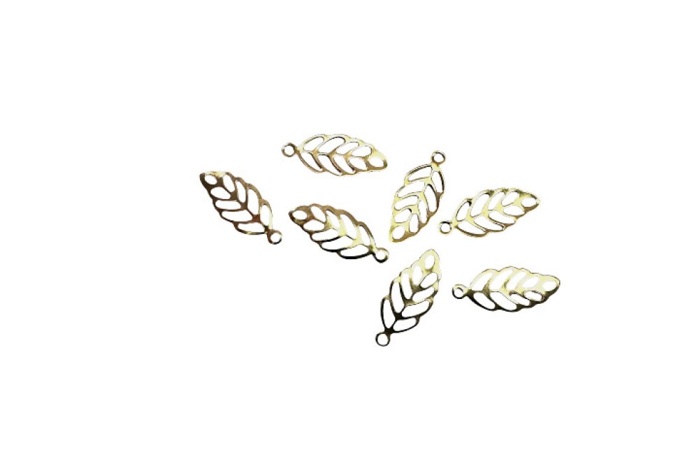 Lot composé de dix breloques feuille, acier inoxydable doré 304.