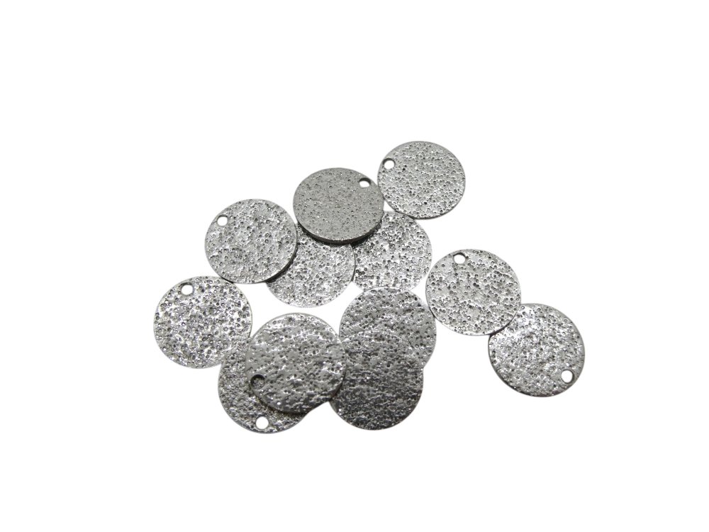 Lot de 10 breloques, sequins ronds 10mm en acier inoxydable argent pailleté.