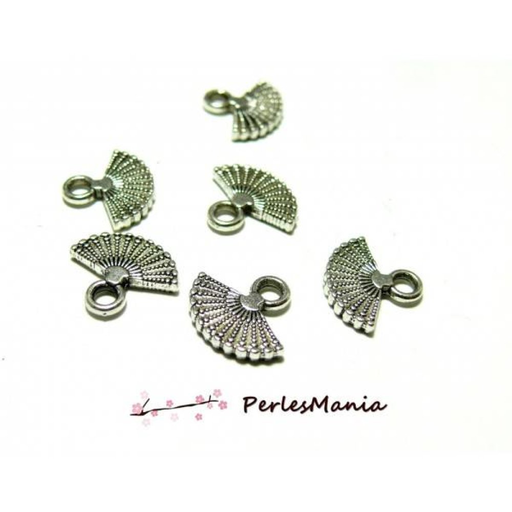 10 pendentifs mini eventail vieil argent 2Y5218 breloques pour création de bijoux Dimensions: 14x12x2mm Trou: approx 2mm Matériaux: métal Idéal pour création de collier et bracelet. A utiliser par exemple sur une chaînette d'extension pour terminer votre création Pendentif et apprêt pour bijoux. Apprêt garanti sans nickel, sans plomb et sans cadmium. Découvrez toutes nos offres sur www.faceboo Perlesmania, vente en ligne de perles, apprêts pour la création de bijoux fantaisie (loisirs créatifs) : perles en argent et brozne, perles d'agate, de nacre, perles semi précieuse, perles fantaisie, perles shambala…