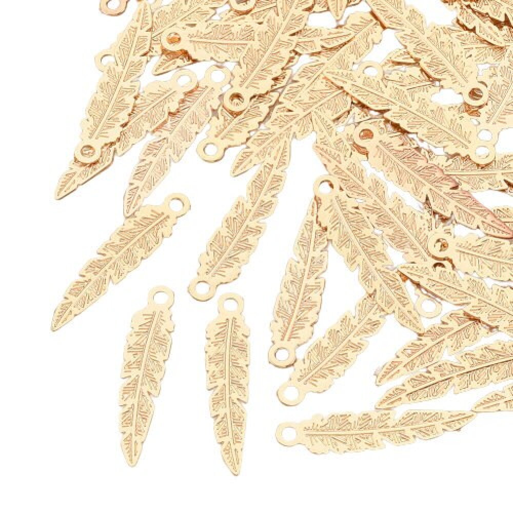 10 Pendentifs plume doré en laiton 17 x 4 mm
